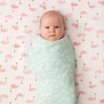 Breathable and snuggly soft, the aden + anais essential 100% cotton muslin baby swaddle blankets ensure little ones’ comfort and parents’ peace of mind. These baby swaddle blankets are generously sized, which not only makes it easier to swaddle with them, but it also makes them incredibly versatile. A go-to for bedtime and beyond, aden + anais essentials baby swaddle blankets can be used in a variety of ways–pram/stroller cover, burp cloth, nursing cover, playtime mat and on-the-go changing mat to name just a few–surrounding your little one in a comfy softness that remains super soft wash after wash.