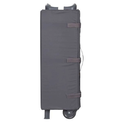 Diaper changes become a breeze with the changing station, deluxe 3-pocket parent organizer and built-in diaper stacker. The changing table with secure belt conveniently flips over when not in use. As your little one grows, simply remove the bassinet feature and the nursery center is transformed into a safe environment for your child to play. The dual wheels with brakes provide easy mobility and added security. When it’s time to travel, simply fold and store the nursery center in the carry tote.