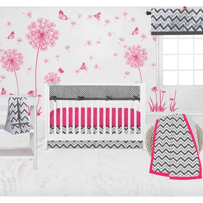 - 10 pc Crib Set with Crib Rail Guard: Reversible Long Side Crib Rail Guard Cover, Cotton Percale Reversible Comforter/Play Mat, Four Muslin Cotton Swaddle Blankets, Cotton Percale Fitted Crib Sheet, Cotton Percale Crib Skirt/Bed Ruffle, Diaper Stacker and Window Valance.