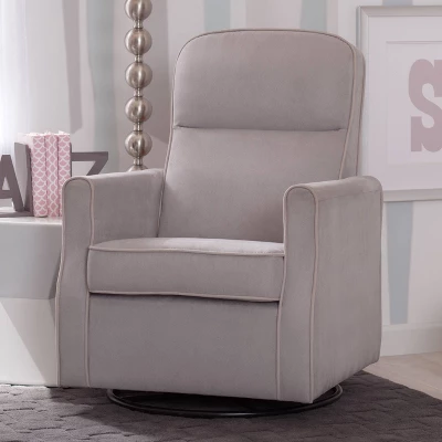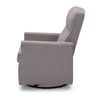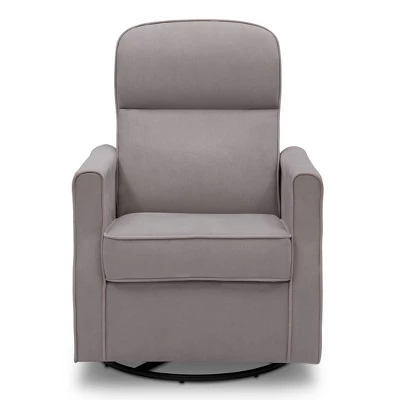 The Clair Slim Nursery Glider Swivel Rocker Chair from Delta Children allows you to sink-in and snuggle up with your baby, no matter how much floor space you have available. This glider features a striking, curved silhouette that stands up to real life–it’s upholstered in durable microfiber fabric that is easy to clean. The smaller footprint of this petite glider helps you maximize every square inch without sacrificing comfort. The chair’s smooth, built-in gliding and swivel system allows you to rock and relax with your little one for years to come.
