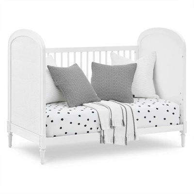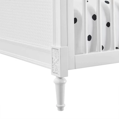 - 4-IN-1 CONVERTIBLE CRIB: Crib converts to toddler bed, daybed and sofa (Daybed/Sofa/Toddler Guardrail included) | Available in Bianca White | Crib features woven cane detailing, rosette carvings and fluted legs