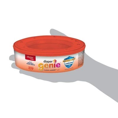 Diaper Genie Clean Laundry Scent refill bags with Max Odor Lockâ„¢ feature upgraded and improved technology while offering the same trusted odor protection you know and love. Our Max Odor Lockâ„¢ refills consist of multi-layers to seal in dirty diaper odors while the built-in odor controlling antimicrobial inhibits bacteria growth on the film to help protect from germs. The Clean Laundry Scent helps neutralize strong diaper odors to keep your Nursery smelling fresh and clean. Our continuous bags hold up to 270 newborn sized diapers per refill so you can spend less time making trips to the trash and more time with your baby. When it’s emptying time, the opaque film hides the dirty diapers so you won’t have to relive all of those big blowouts – Phew! Since Clean Laundry Scent refills are made to fit all Diaper Genie pails, you won’t ever have to rely on anything but the best to keep your baby’s nursery smelling fresh and staying clean. Only Diaper Genie refills guarantee Odor Lock Protection. If you’re not completely satisfied with your Diaper Genie refill bags, you can return for a full refund or replacement.
