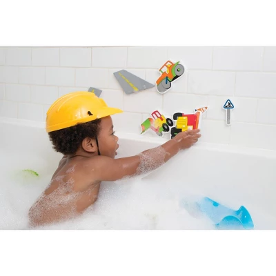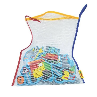 Road Construction themed Edu-Foam kit allows children to create their own imaginary scenes right on the bathroom tiles. When wet, these pieces stick to tiles and each other for bath time fun. Edu-Foam is extraordinarily resistant to mildew and mold, and won’t absorb water or change shape. These easy-to-grab foam pieces stick to any smooth surface when wet. Combine kits for additional fun. All come with a mesh bag for easy clean up! Set of 26 pieces.
