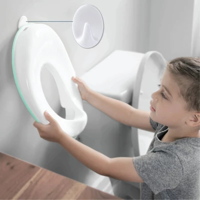 Every mom knows you always need that training seat handy for last-minute bathroom runs. A damage-free adhesive hook is included for easy storage so you always know where your potty is.