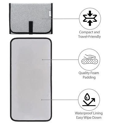 - CUTE DESIGN: The travel changing pad folds into a clutch so it can be very discreet. It has a stylish and modern design and it comes in two neutral colors so it can be perfect for moms and dads, as well as for baby boys and girls.