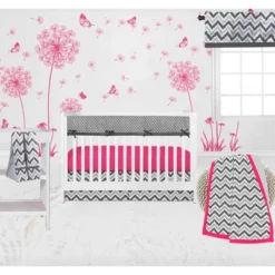 Bacati – Ikat Dots Leopard Pink Grey Muslin Girls 10 Pc Crib Set With Wall Hangings & Mobile
