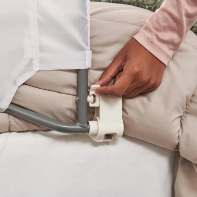 Regalo Extra Long Swing Down Bed Rail. This bedrail is perfect for those restless little sleepers. The swing down feature allows the rail to swing down out of the way when not in use and is convenient for making the bed. The all steel construction makes it very sturdy and durable. This bedrail has a 20″ sidewall that accommodates thick mattresses and is 54″ long for added security. The exclusive Gap Guard feature prevents your child from sliding between the mattress and bedrail. This bedrail fits up to a queen size mattress. The easy, no-tool set up makes this the perfect hassle free extra long bedrail. Discontinue use immediately if product breaks.